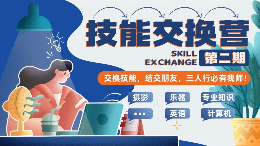 技能交換營·第2期 不僅技能,還有良師益友-<摸魚時候干森么?線上活動>攝影?計算機?吉他?英語?專業(yè)知識?交換技能,結交朋友,三人行必有我?guī)煟?/div>
